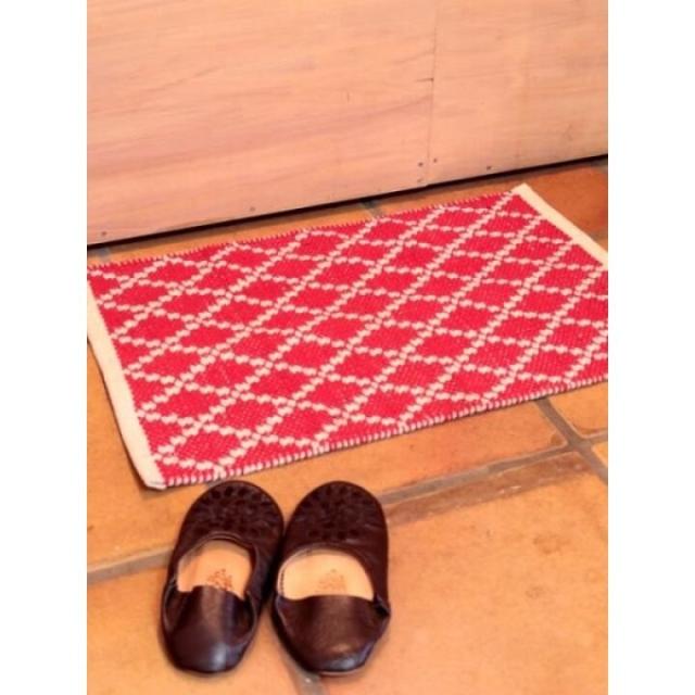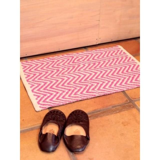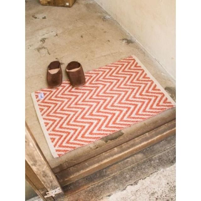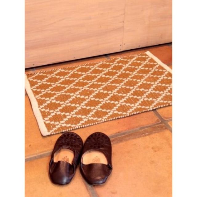綺麗な幾何学模様の単色織りマット。シンプルだからどんなお部屋にも使いやすい。織り生地が表情のあるぽこぽことした凹凸で肌触りも楽しめる。玄関、キッチン、リビングとマルチに使えるサイズ感。