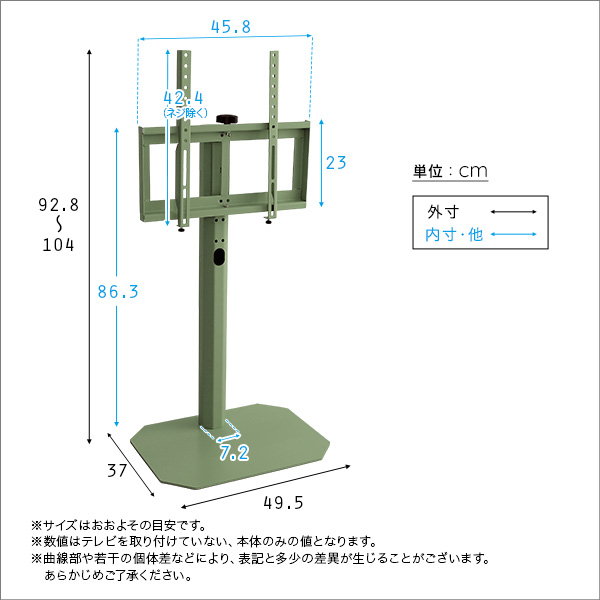サイズ(約):W49.5×D37×H92.8-104cm