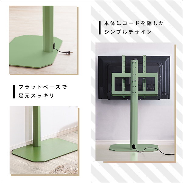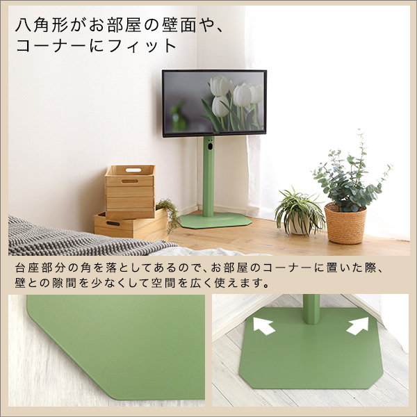 壁寄せテレビスタンド Vihrea 北欧インテリア 八角壁寄せテレビスタンド ロータイプ コード一体型収納 240度首振り 32-65型テレビ対応