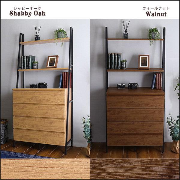 チェストラック オープンシェルフ 幅82.5cm オールチェストタイプ ヴィンテージ調 ブラックアイアン 木目 引き出し収納棚