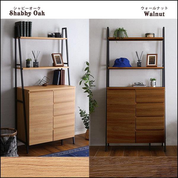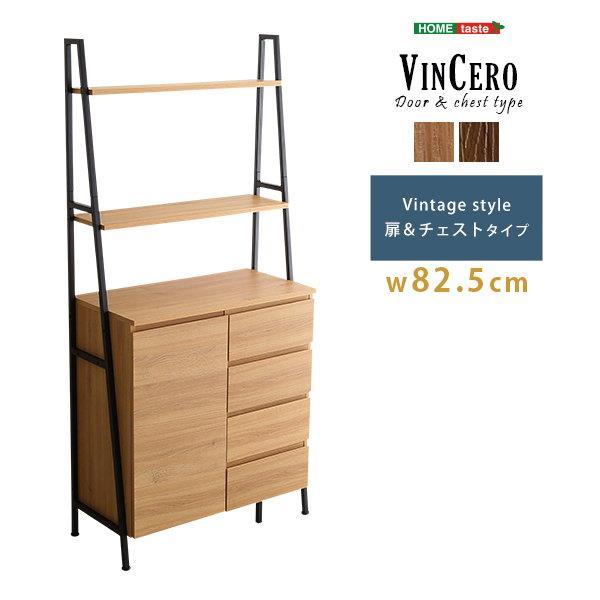 チェストラック オープンシェルフ 幅82.5cm 扉&チェストタイプ ヴィンテージ調 ブラックアイアン 木目 引き出し収納棚