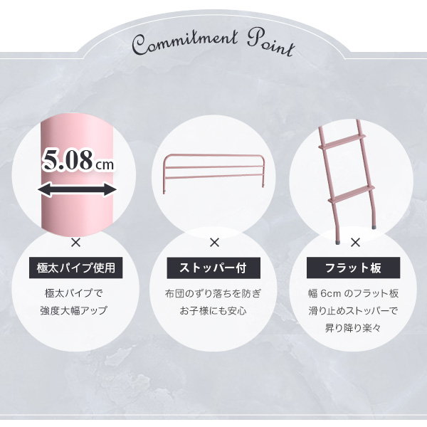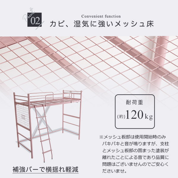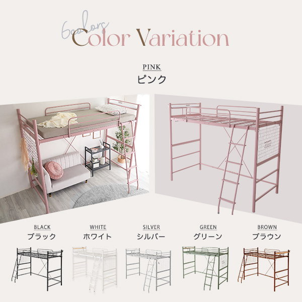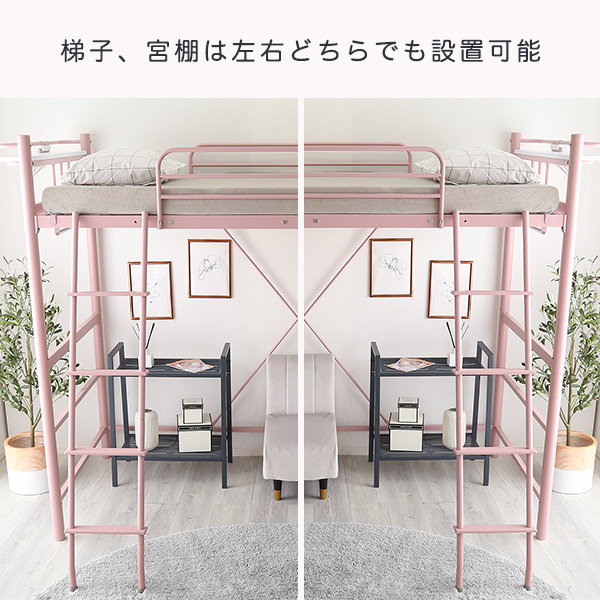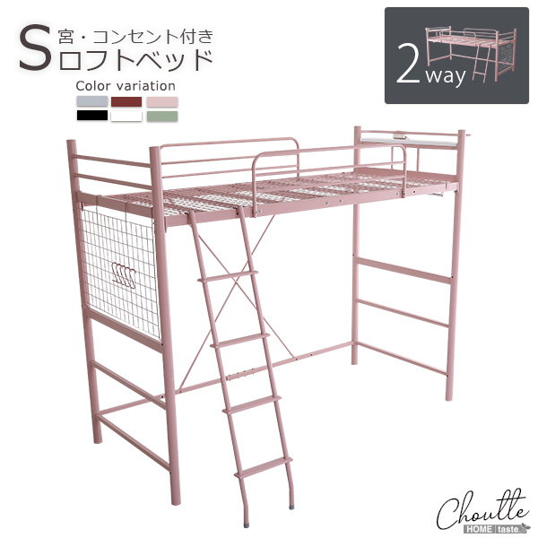 ロフトベッド 梯子 宮棚 コンセント付き ミドル ハイタイプ 2way 大人かわいいインテリア Choutte スチールパイプ