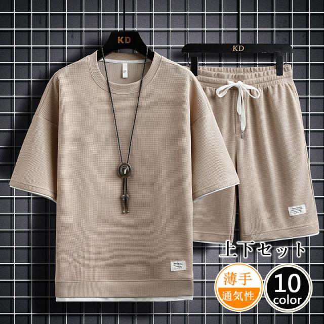 セットアップ メンズ 半袖 夏 大きいサイズ 夏服 パンツ上下セット 薄手 上下2点セット メンズファション 夏 半袖 ジャージ 黒 白 カジュアル