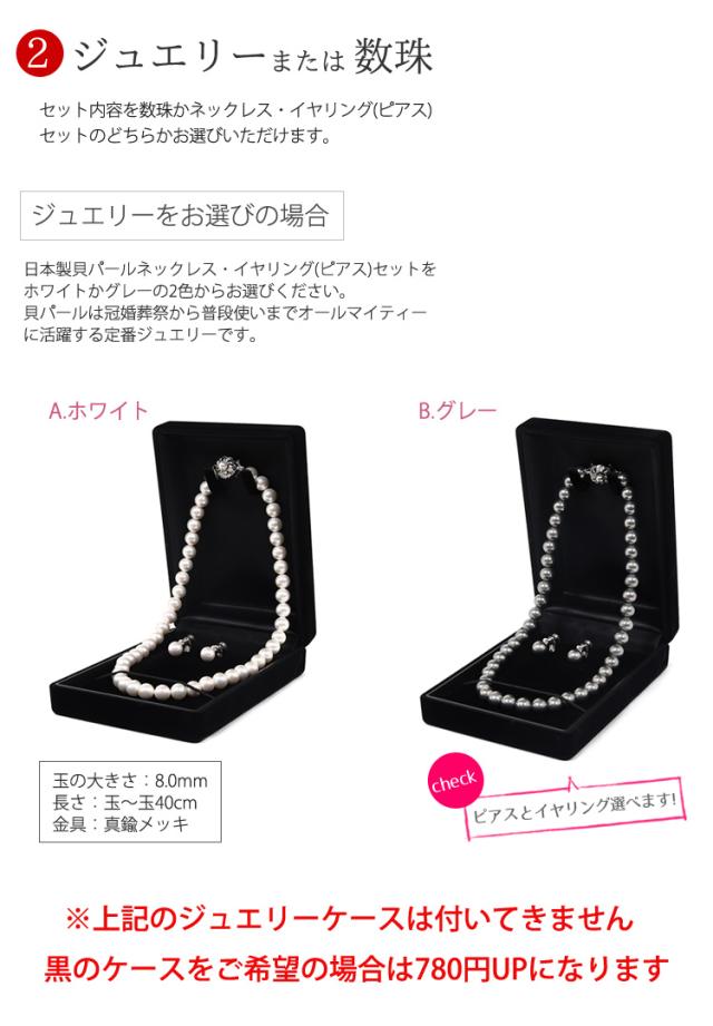 ・ジュエリーをご選択のお客様はホワイトとグレーからお選びいただけます。(イヤリングからピアスへの変更も可能)