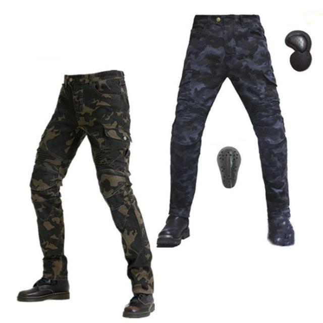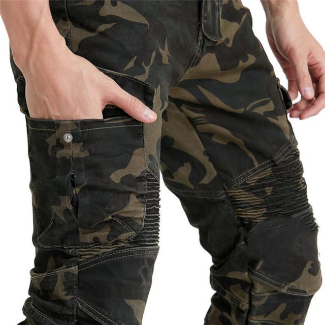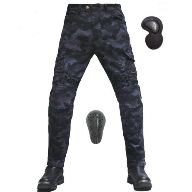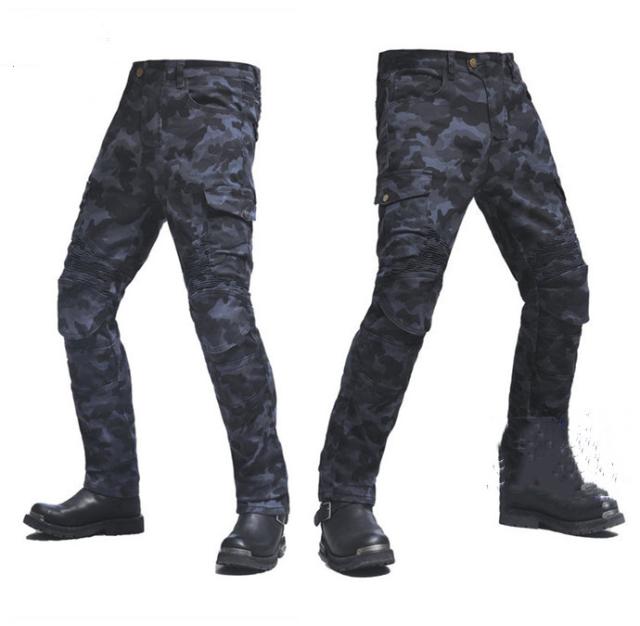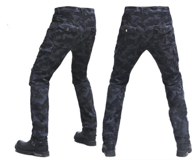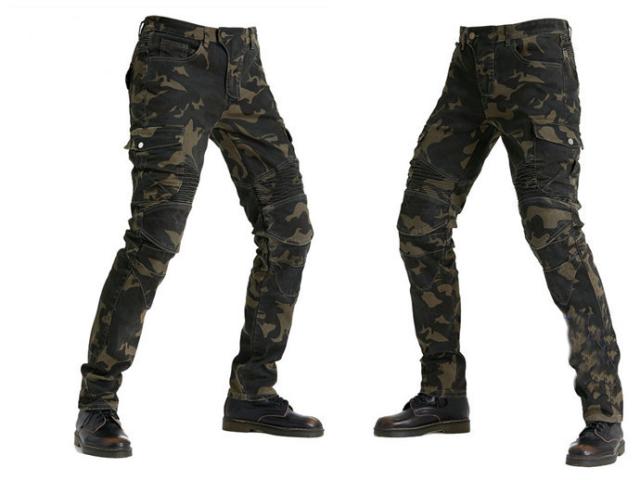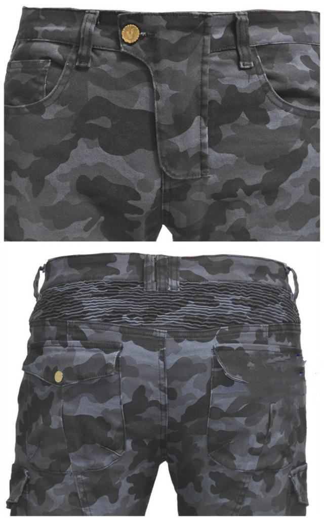 バイク 迷彩 パンツ ライディング デニム ジーンズ ツーリング オールシーズン 腰用 膝用 プロテクター装備付き