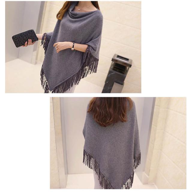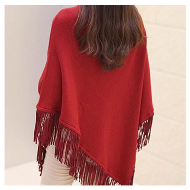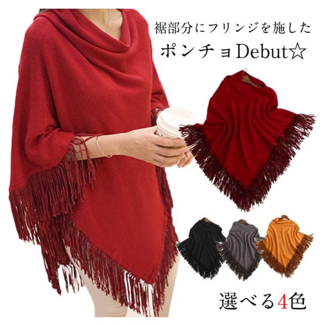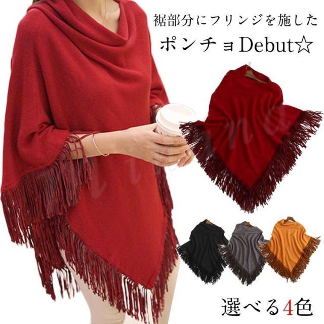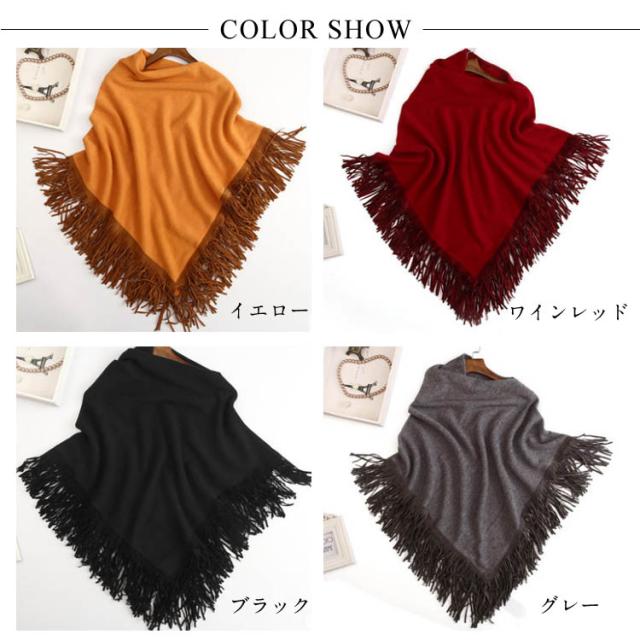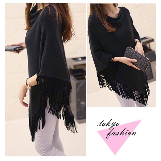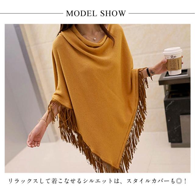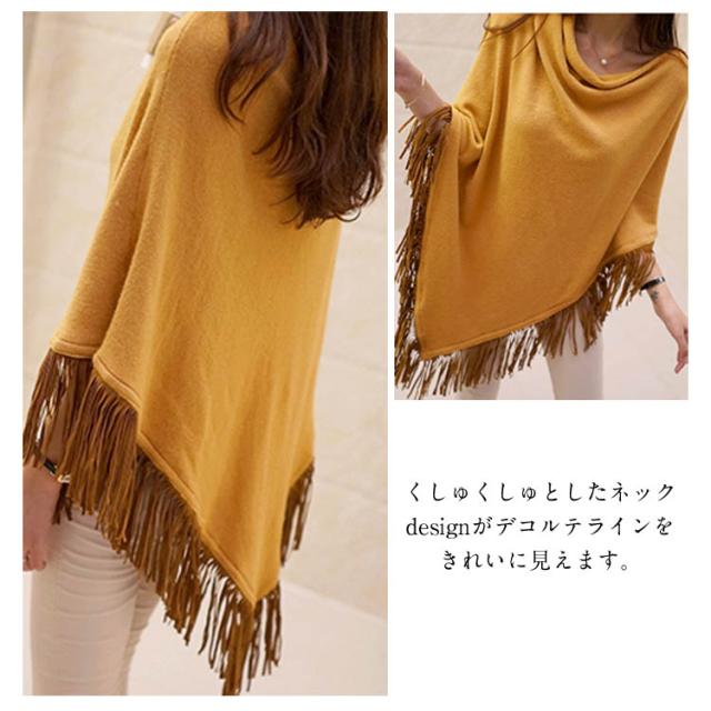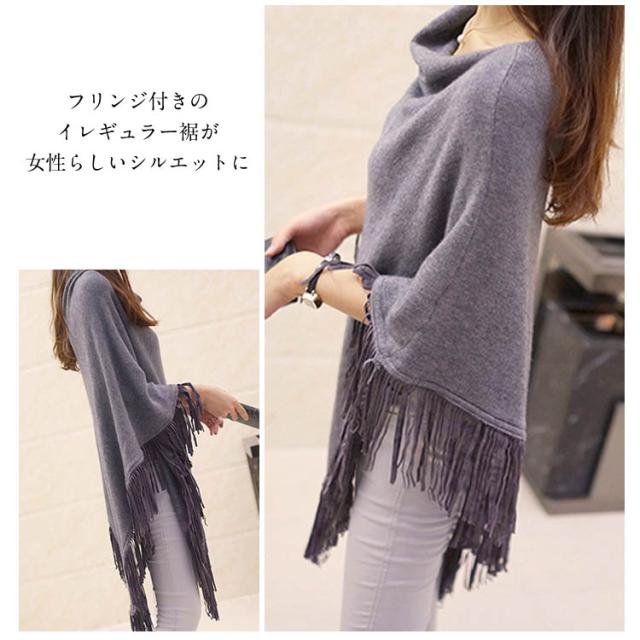 ニット ポンチョ プルオーバー フリンジ ニット レディース 可愛い