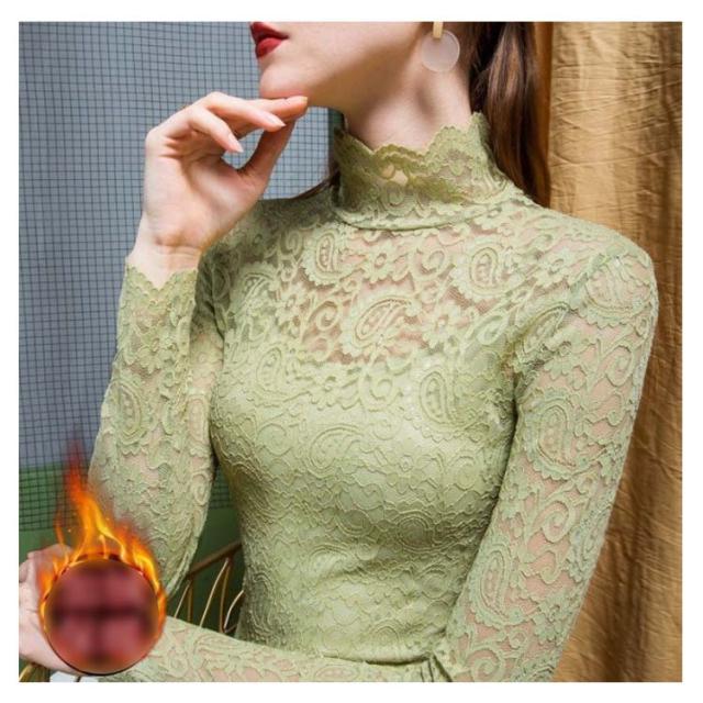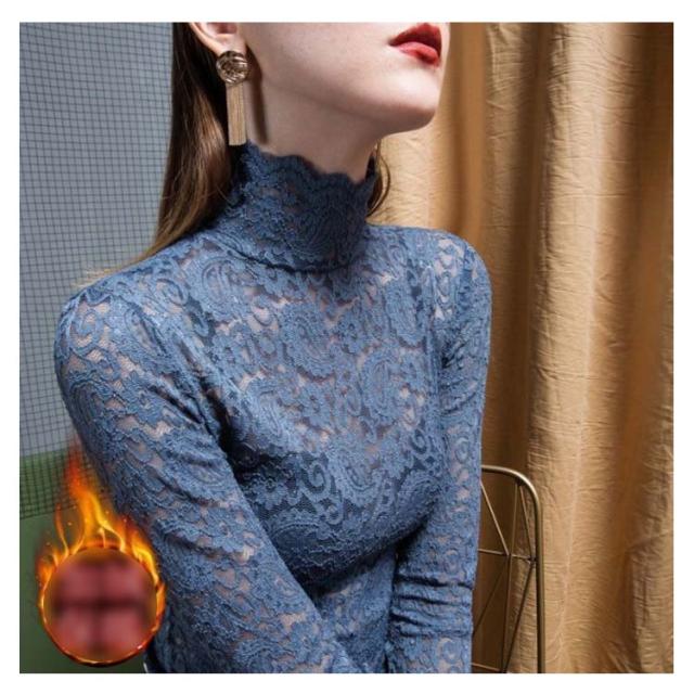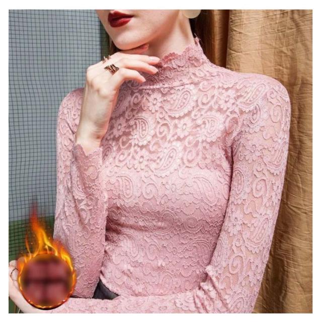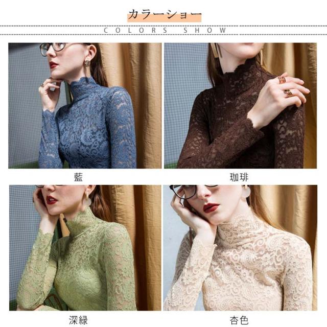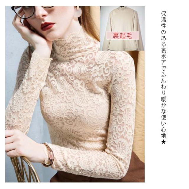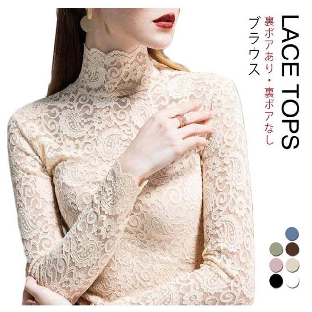 レース ブラウス レディース ハイネック ブラウス 長袖 ブラウス レース トップス 裏ボア 結婚式 お呼ばれ セクシー フリルブラウス 立ち襟 レース インナー プルオーバー 長袖 ブラウス パーティー 送料無料