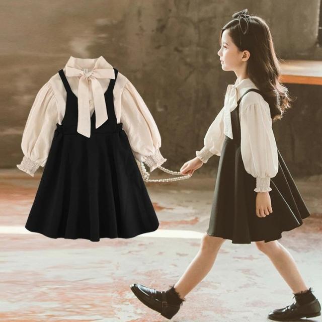 2点セット 子供服 セットアップ 女の子 キッズ 春秋 長袖 シャツ ワンピース 韓国子供服 フォーマル おしゃれ 可愛い ジュニア服 入園 入学 二次会結婚式
