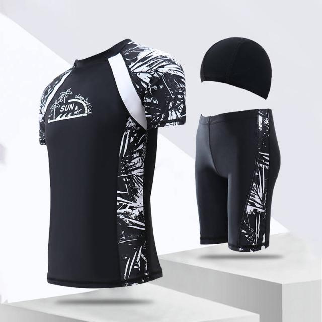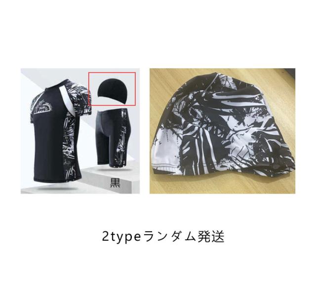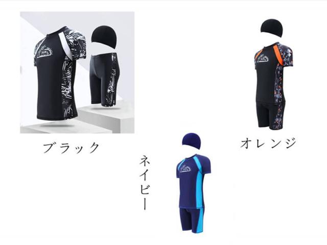 フィットネス水着 メンズ ラッシュガード 水着 水泳帽 上下セット 半袖 水泳 スイムウェア 3点セット