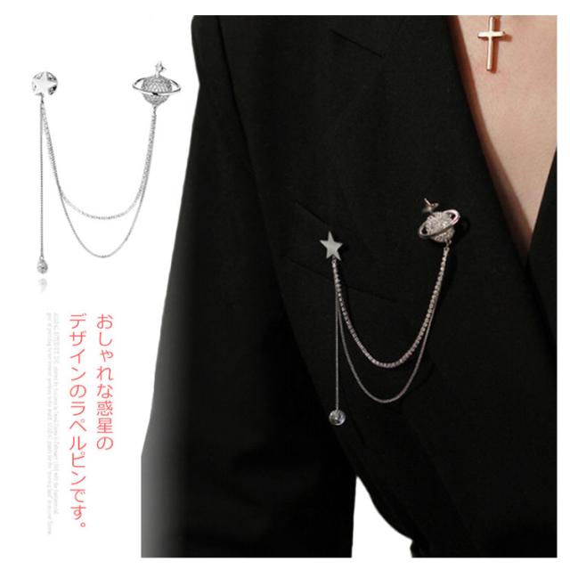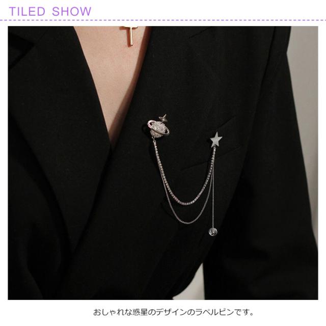 ラペルピン ピンブローチ メンズ レディース アクセサリー 星 月 惑星 飾り おしゃれ ラペルチェーン 普段使い 結婚式 発表会 入学式 卒業式 宴会 ファッション プレゼント ギフト 送料無料