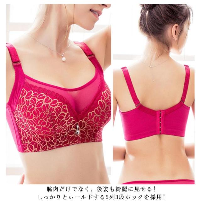 | 驚くほどの自分の胸にきっと心踊る バストだけでなく、脇に流れたお肉をしっかりバストへ導く脇にはボーンを採用し、脇肉へと戻しません。 胸チラをブロック! 胸ちらをブロックするレースはエレガントな印象にも♪ 胸の位置が違うだけで印象は全く変わってきます。 脇肉だけでなく、後姿も綺麗に見せる!しっかりとホールドする5列3段ホックを採用! バランスの取れたU字設計が背中のお肉と肩紐ずれをブロック!さらにワイドベルトが背中のぼこぼこお肉をなくします。 幅広なワイドベルトが背中のぼこぼこお肉をなくします。 | |