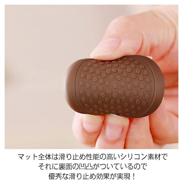 | シンプルな色で目立ちにくい、貼るだけの簡単なすべり止め。 ソファやテーブルの足に玄関・台所・バス洗面所に使える、 吸着タイプだから床にのり跡を残さず、貼り付けたままお洗濯もできます。 マット全体は滑り止め性能の高いシリコン素材で、それに裏面の凹凸がついているので、優秀な滑り止め効果が実現! | |