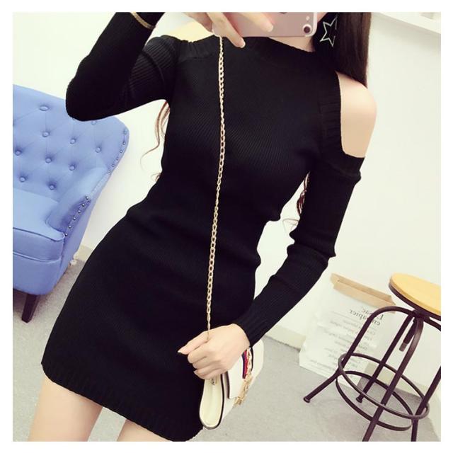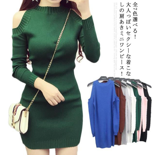 全7色選べる!ニットワンピース ニットワンピ 肩出し 秋冬 長袖 肩あき オフショルダー チュニックワンピース ロングニット チュニック ミニワンピース 大人 セクシー オシャレ 無地 春 秋 送料無料