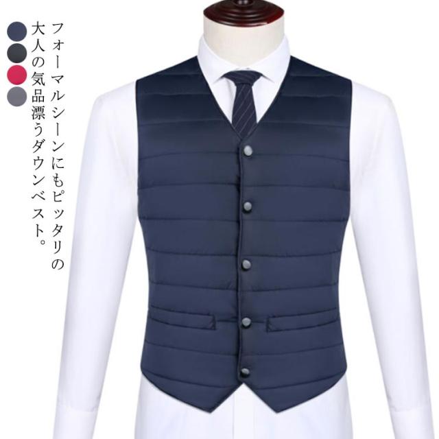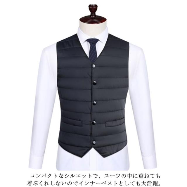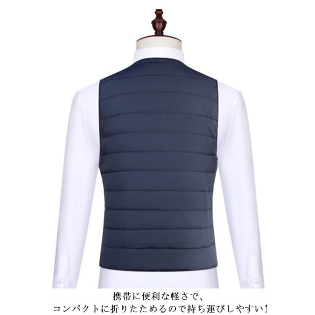 メンズ 中綿ベスト ジレベスト ノースリーブ アウター スリム 軽量 薄手 コンパクト すっきり 暖かい 防寒 インナー アウター 無地 大きいサイズ ビジネス フォーマル カジュアル 秋冬新作 送料無料