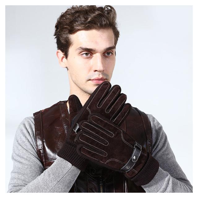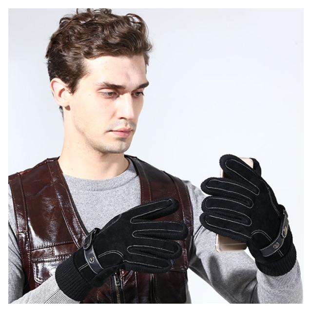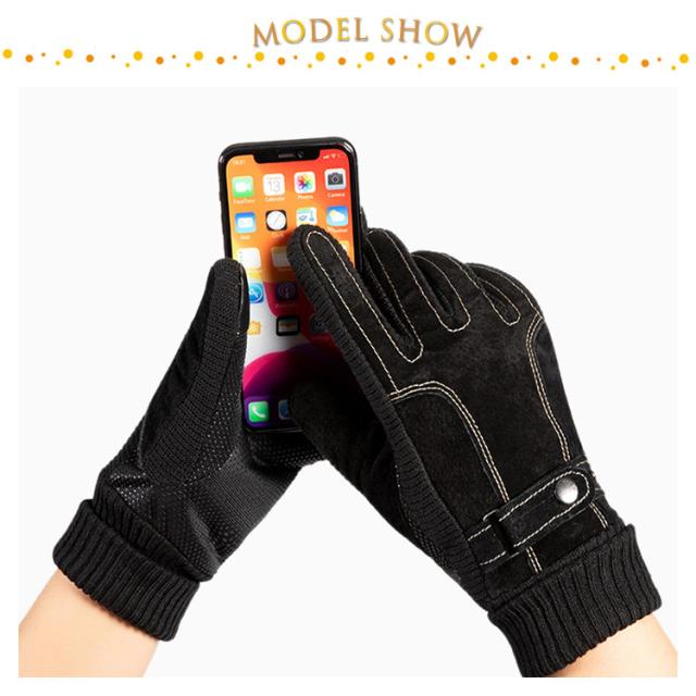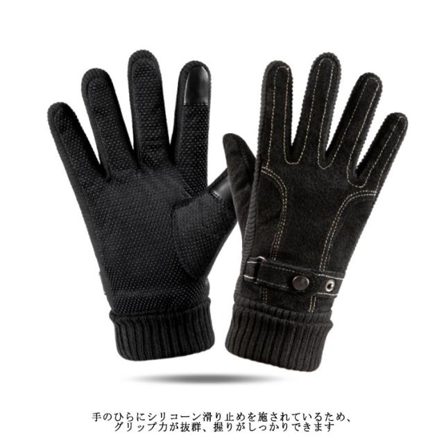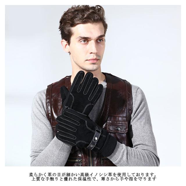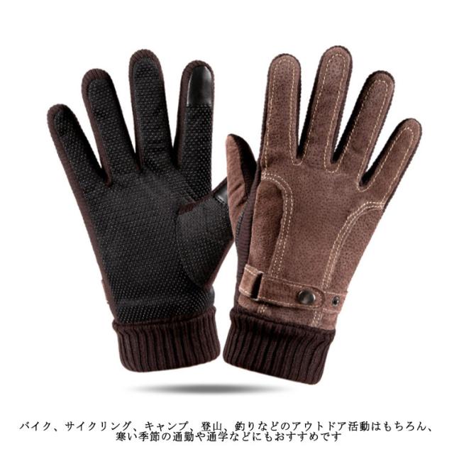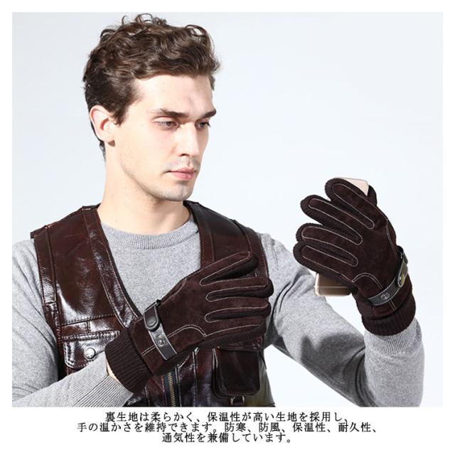 【送料無料】手袋 メンズ レザーグローブ 裏起毛 防寒 本革 スマホ対応 アウトドア スノー 釣り バイク 冬 おしゃれ 暖かい あったか 男性用 自転車 滑り止め 手首 リブ素材 黒 ブラウン ビジネス 通勤