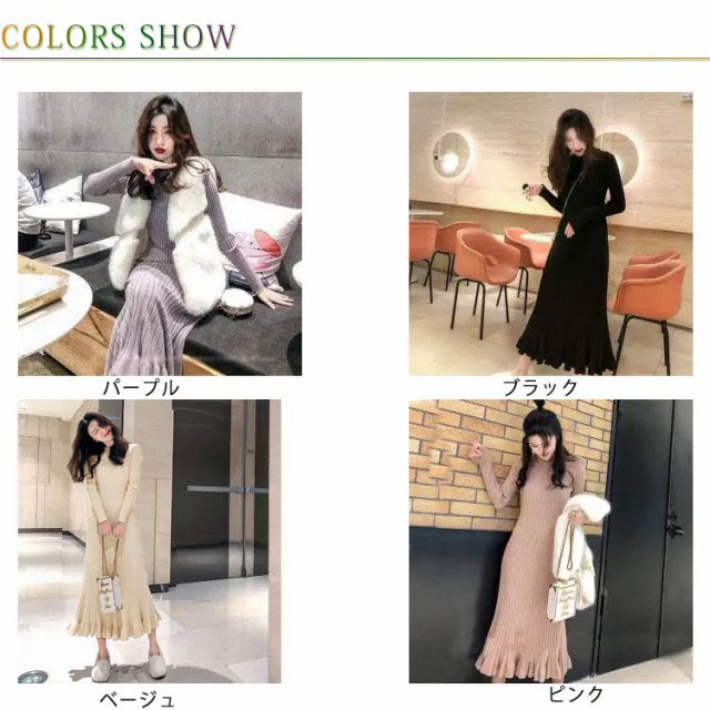 フリル裾 ロングニットワンピース マーメイド ニットワンピース ニットワンピ ロング丈 ミモレ丈 リブニット 秋冬 aライン タイト マーメイドスカート お洒落 20代 30代 40代 50代