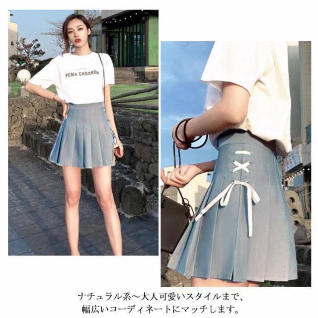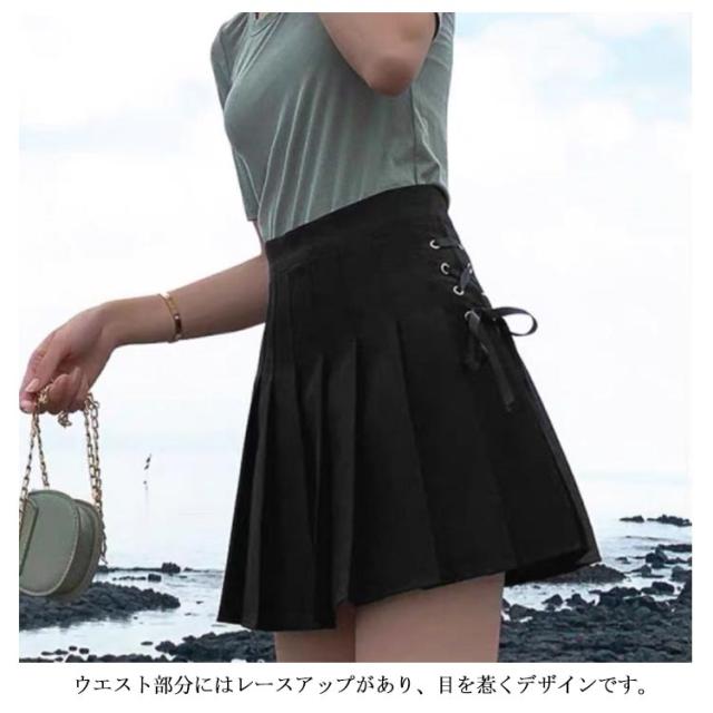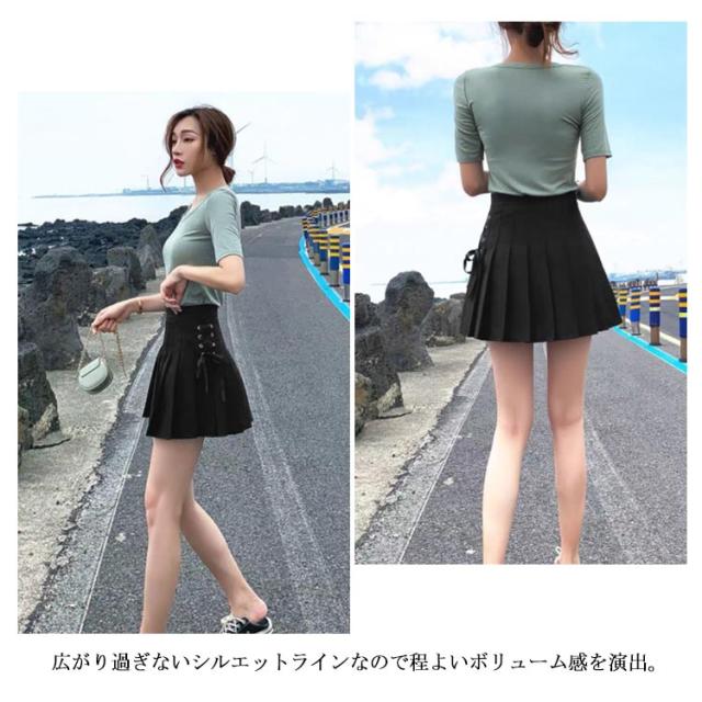 レースアップ プリーツ スカート 制服スカート スクールスカート ミニスカート プリーツ 無地 セーラー服 女子制服 レースアップ ハイウェスト インナーパンツ付き チラ見せ防止 Aライン ボトムス フレアスカート ミニスカート 美脚 送料無料