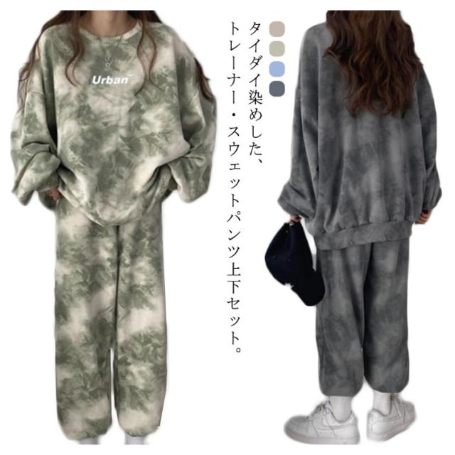 ジャージ 上下セット レディース タイダイ染め スウェットトレーナー スウェットパンツ ルームウェア 部屋着 セットアップ 長袖 トレーナー ロングパンツ 寝巻き ナイトウェア スエット ゆったり 大きいサイズ ビッグシルエット パジャマ ダンス衣装 スポーツウエア 送料無料