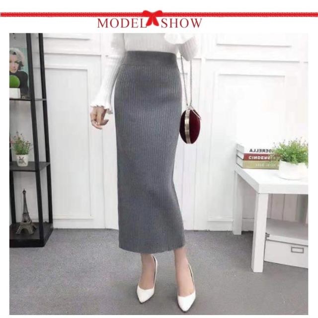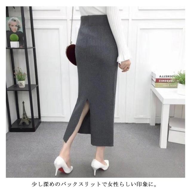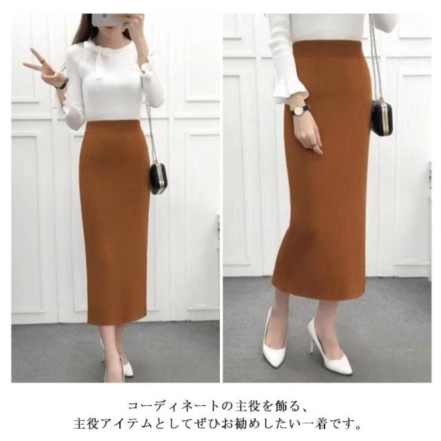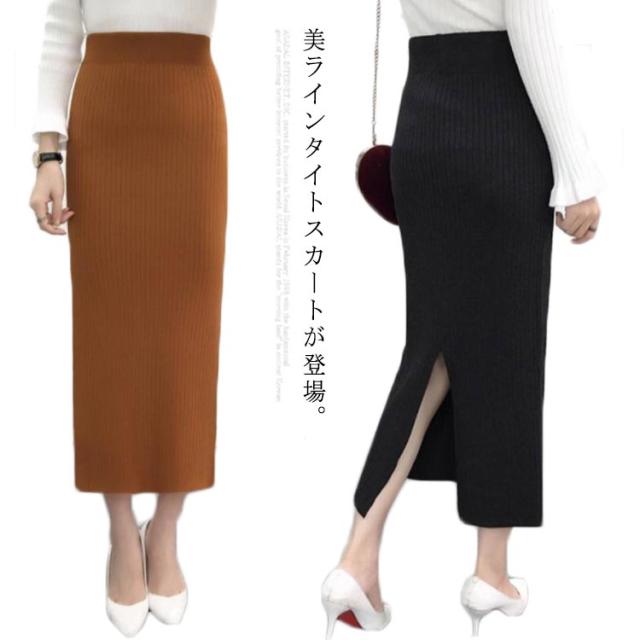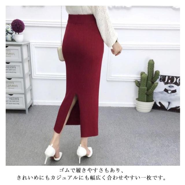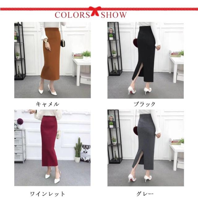 ニット スカート バックスリット 冬 ニットスカート ロング丈 シンプル 無地 ミモレ丈 リブスカート タイトスカート リブニットスカート ロング ブラック コーラレット グレー ワインレット