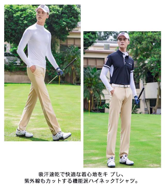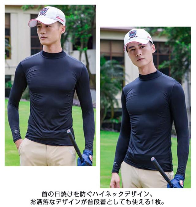 | ストレッチ性に優れ、どんな動きにも最適なフィット感を与えてくれる。 凄く体の動きにフィットする 吸汗速乾で快適な着心地をキ プし、紫外線もカットする機能派ハイネックTシャツ。 ジャストフィット感と伸縮性を体感できます。 首の日焼けを防ぐハイネックデザイン、お洒落なデザインが普段着としても使える1枚。 プレー中はストレスフリーで快適。 シンプルなデザインだから、ゴルフ 以外の普段着としても活躍。 | |
