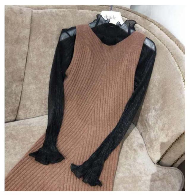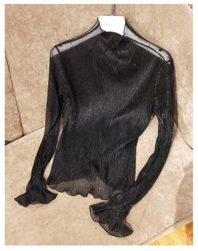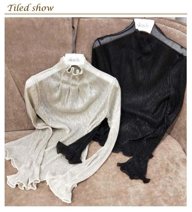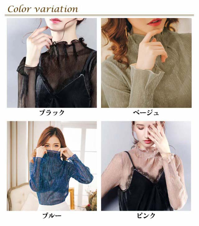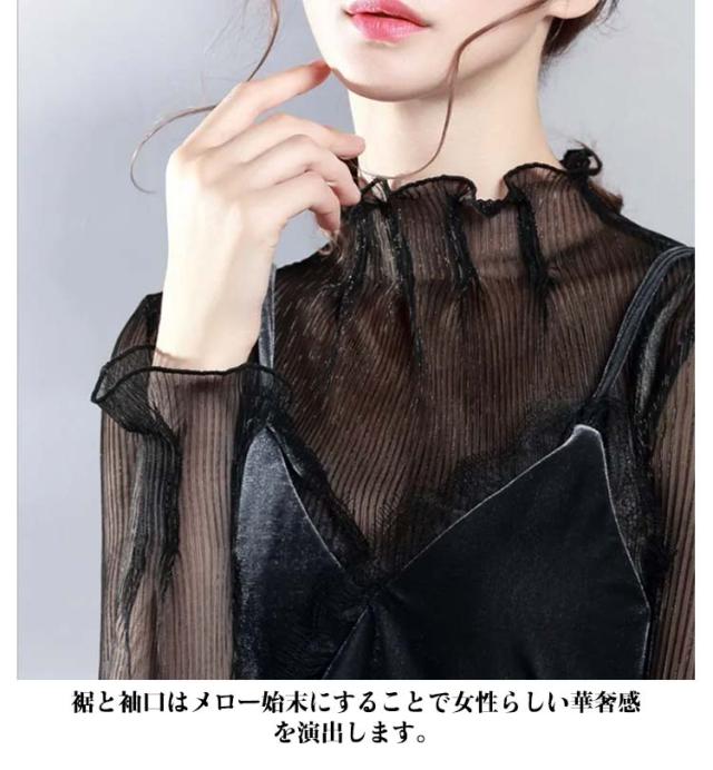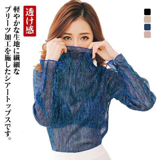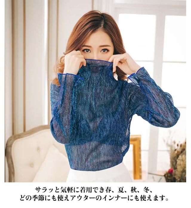 シアー トップス シースルー 透け タートルネック シアーカットソー 送料無料 インナー 重ね着 ハイネック 長袖 トップス ラメ フリル 透け感 薄手 肌着 下着 きれいめ レイヤード 肌隠し