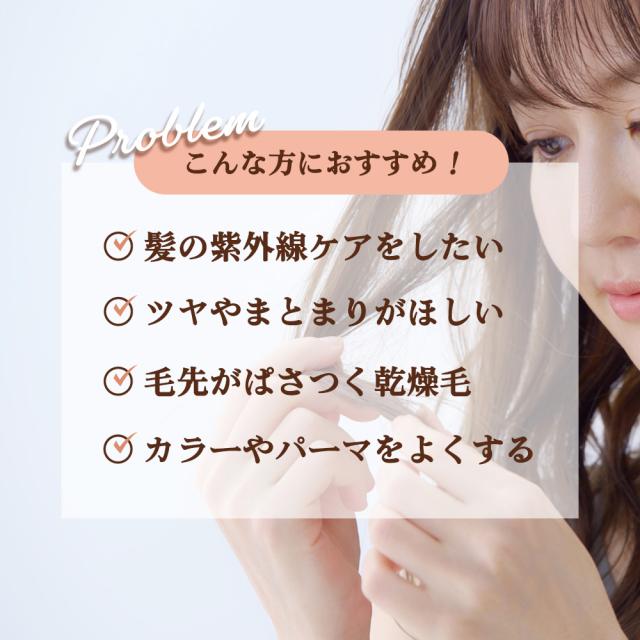 | 成分 | 水、グリセリン、ジメチコン、ベヘントリモニウムクロリド、アモジメチコン、セタノール、BG、セテアリルアルコール、イソノナン酸エチルヘキシル、イソプロパノール、γ-ドコサラクトン、メドウフォームー 8-ラクトン、ケラチン、加水分解ケラチン、ポリクオタニウム-51、ヒアルロン酸Na、アセチルヒアルロン酸 Na、シア脂、ホホバ種子油、クエン酸、カキタンニン、(ジヒドロキシメチルシリルプロボポキシ) ヒドロキシプロピル加水分解ケラチン、ラノリン脂肪酸コレステリル、オウゴン根エキス、ワレモコウエキス、カニナバ ラ果実油、ジラウロイルグルタミン酸リシンNa、アルガニアスピノサ核油、ジカプリル酸PG、トリ(カプリル酸/カプリン酸)グリセリル、PPG-52ブチル、ラウロイルグルタミン酸ジ(フィトステリル/オクチルドデシル)、ラウロイルグルタミン酸ジヘキシルデシル、テトラオレイン酸ソルベス-60、ヒドロキシエチルセ ルロース、フィトステロールズ、クオタニウム-18、プロパンジオール、PEG-160M、エタノール、クエン酸 Na、グリシン、硫酸亜鉛、トコフェロール、フェノキシエタノール、香料 |