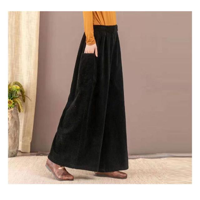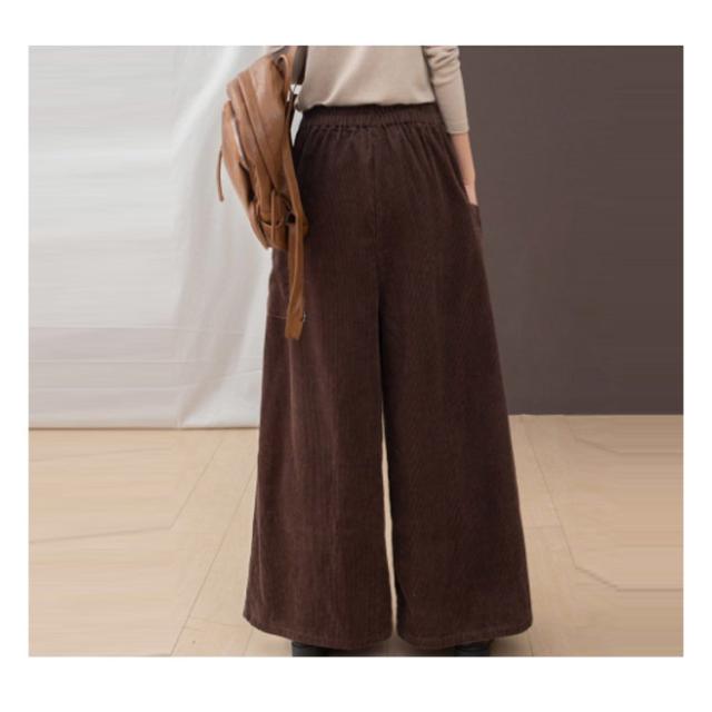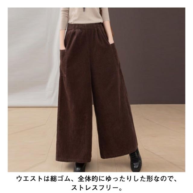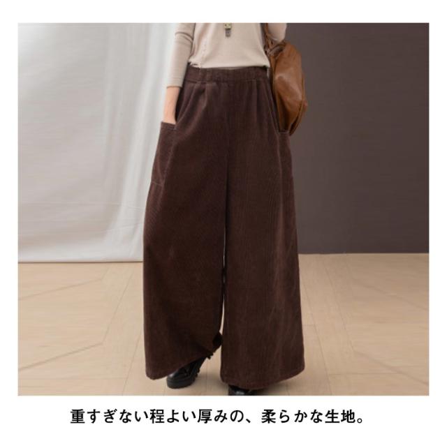 コーデュロイパンツ ワイドパンツ コーデュロイ フレアパンツ ガウチョパンツ ロング丈 ボトムス パンツ ウエストゴム ゆったり 大きいサイズ