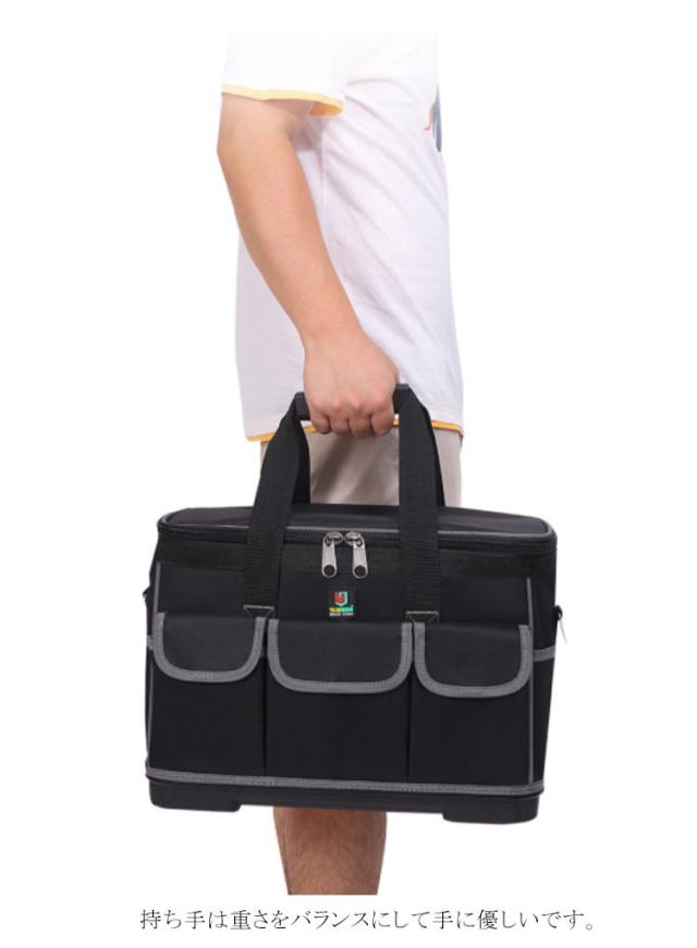 | 【大容量】全面プロ仕様、多機能16ポケット配置しております。小型工具から電動工具まで収納可能です。 【耐摩耗抜群】600D高密度オックスフォードを採用しています。強化縫製でしっかりと仕上げられ、耐荷重、耐摩擦、耐久性に優れてます。 【足置き台付き 】 ツールバッグを支える役割だけでなく、地面と2センチの隙間を作るので、劣悪な工場現場との直接接触を避けることも出来ます。 【多用途】工具入れベルトは様々な道具や工具の収納、携帯に、仕切りがついており大変便利です。ガーデニング、釣り、工芸、建築、大工、請負業者、屋根、ラインマン、石工、鉄工などの作業を携わる人に最適にします。日常生活のDIY活動だけでなく、自動車修理、木工および専門な修理活動も最適です。 【強化持ち手】持ち手は重さをバランスにして手に優しいです。 【 ファスナー】特にデザイン性と実用性は徹底的にこだわり、開閉のしやすさと、長くご使用頂けます。 | |