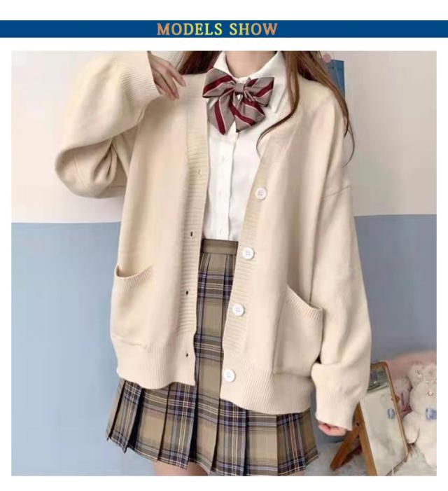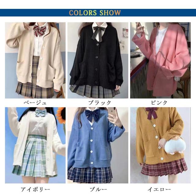 | とってもオシャレなスクールカーディガン♪ 通学で注目を浴びちゃおう★ オールシーズン対応のカーディガンは、ちょっと寒い時やコートのインナーなど一年中大活躍してくれます 程よい厚みでジャケットを上から羽織っても着膨れせず、可愛さKEEP!!! ゆったり着れるサイズ感で学校はもちろん、テーマパークやイベントでのコスプレもオシャレに決まる☆ セーラー服などの学生服やナースなどと相性抜群! | |