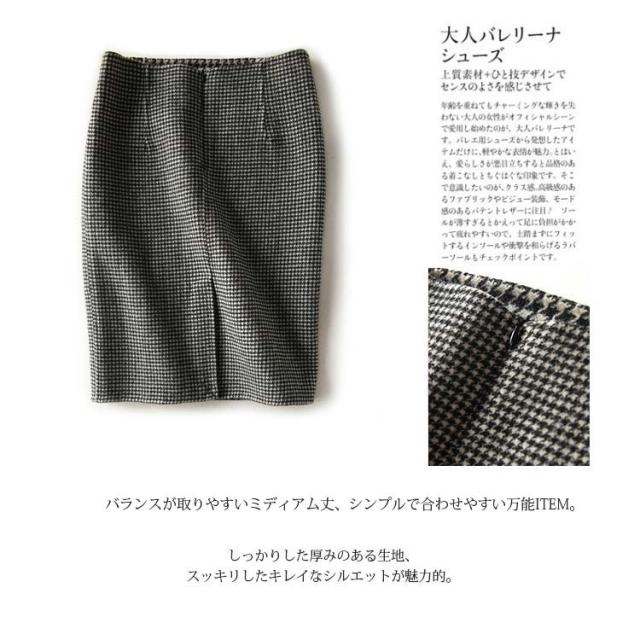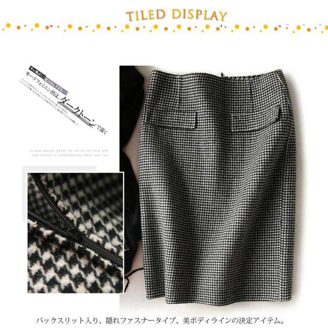 | カジュアルもキレイめも活躍する千鳥柄タイトスカート。 バランスが取りやすいミディアム丈、シンプルで合わせやすい万能ITEM。 しっかりした厚みのある生地、スッキリしたキレイなシルエットが魅力的。 バックスリット入り、隠れファスナータイプ、美ボディラインの決定アイテム。 シャツやニットなどトップスをえらばず、カジュアルスタイルから通勤やパーティーなどのフォーマルシーンも大活躍間違いなし。 | |