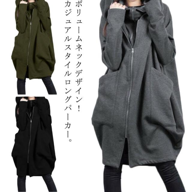 パーカー スウェットパーカー メンズ レディース ボリュームネック ジップアップパーカー ハイネック 長袖 ロングパーカー ビックシルエットパーカー スウェット パーカー アウター 羽織り 大きめ フーディー トレーナー フード付き トップス 前開き