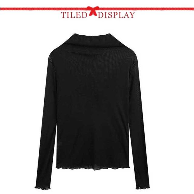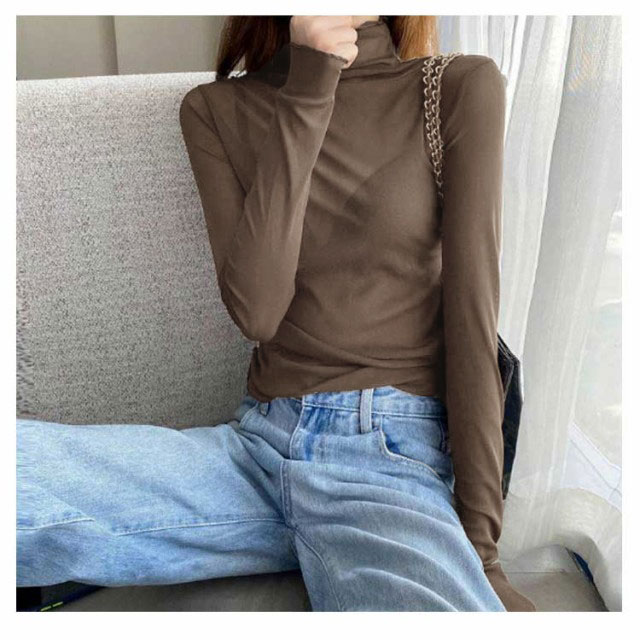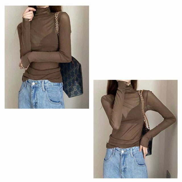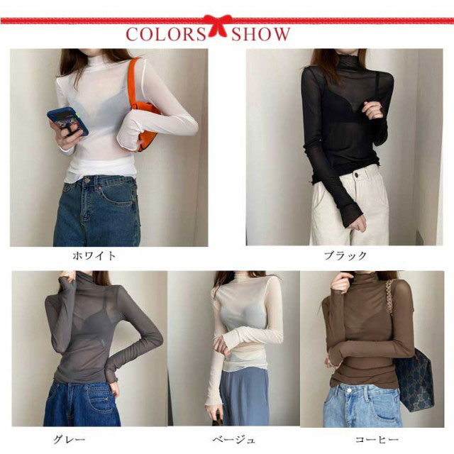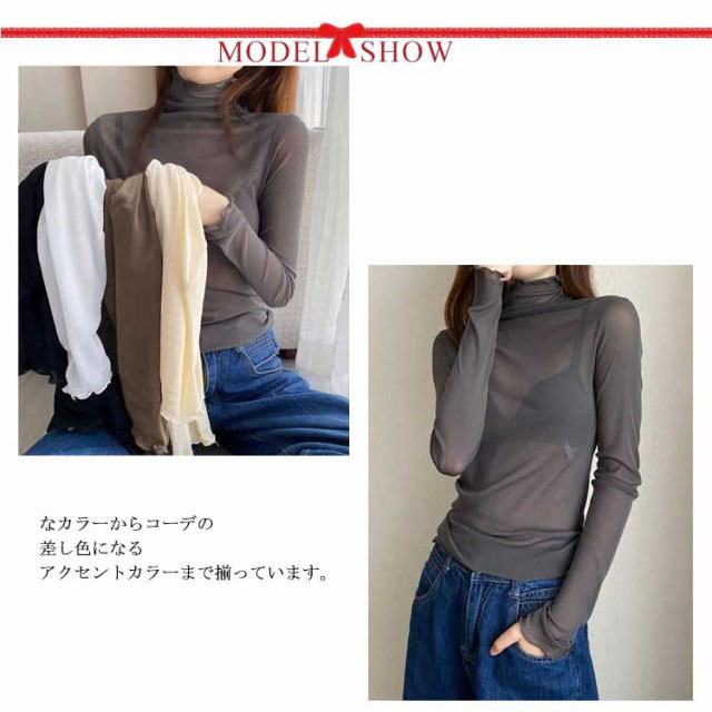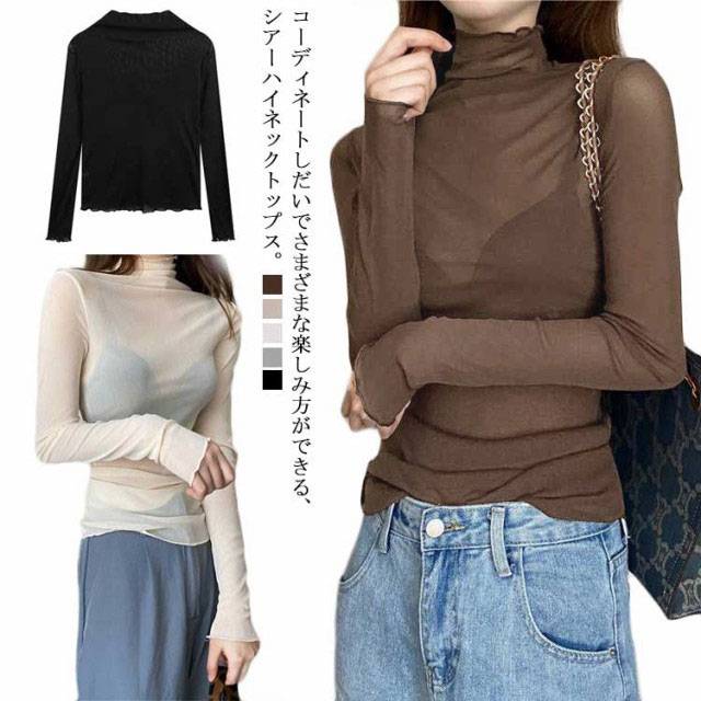 シアー カットソー シースルー レディース ハイネック 長袖 トップス インナー 大きいサイズ 春 秋 透け感 おしゃれ タートルネック 重ね着 コーデ 黒 無地 メッシュ風 紫外線対策 きれいめ カジュアル 送料無料