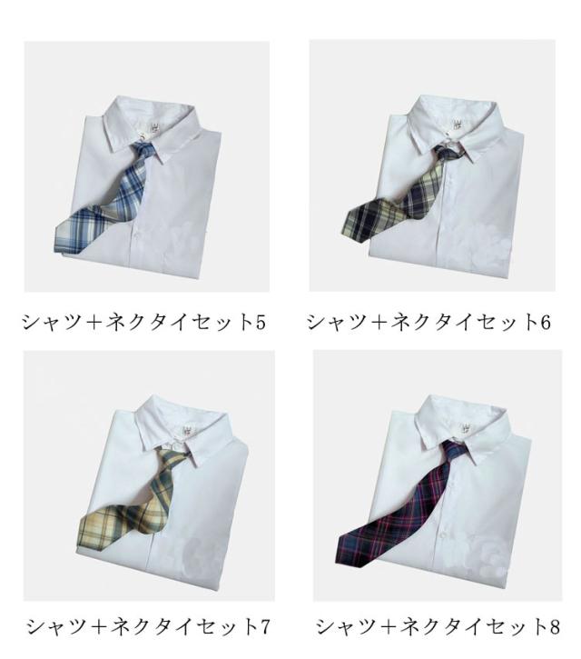 | スクールシーンに欠かせない白いシャツ*ネクタイセット 清潔感のあるスタイルが叶う、清楚で上品な印象を演出します。 薄手軽量のさわり心地、着心地もよく、ポリエステル素材で気候が変わりやすい春や秋など肌寒い季節にも最適なシャツです。 チェック柄のネクタイはどれも派手になりすぎない落ち着きのある上品な色合い。 入学式、学園祭、文化祭、発表会など、フォーマルなシーンにピッタリなセットです。 | |