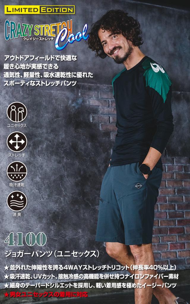 BURTLE バートル ショートパンツ 4100 スポーティなストレッチパンツ 通気性 軽量性 UVカット 吸水速乾 接触冷感 消臭機能 作業用ズボン ワーク 男女兼用 メンズ 春夏用 スポーツ ハーフパンツ