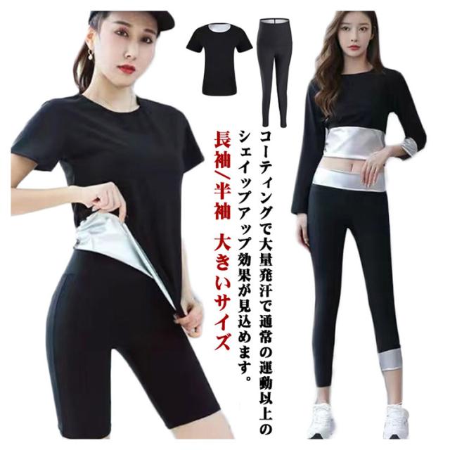 サウナスーツ レディース 上下セット 長袖/半袖 大きいサイズ ダイエット 発汗 サウナパンツ トレーニング スポーツウェア ストレッチ ランニング 筋トレ ジョギング ボクシング ダイエットスーツ 送料無料