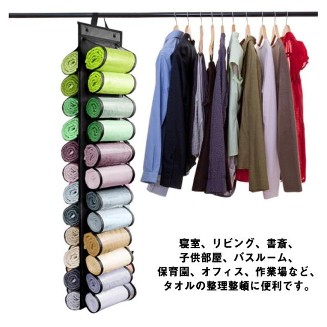 ウォールポケット タオル 24ポケット 吊り下げ収納 ドア掛け収納 クローゼット 収納 タオル収納 ヨガタオル 収納 クローゼット内 収納 吊り下げラック タオル収納 ハンガー 収納 おしゃれ 省スペース 壁掛け収納 透明 クリア フック付き
