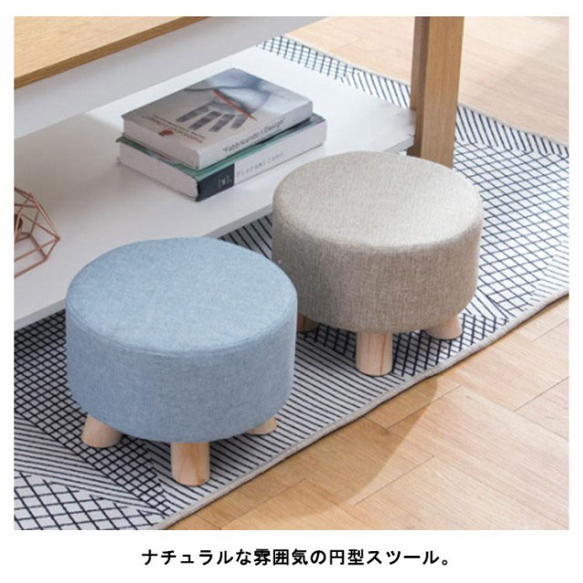 | リビングや寝室、玄関にちょこんと置いて使える♪木製スツール。 木製脚と布張りの小さいイスは、ソファに座ってくつろぐ際のオットマン(足置きいす)がわりにもなる1人掛けロースツールです。 木製の脚の底には傷防止と滑り止めが付いています。 通気性のよいサラサラの綿麻素材でオールシーズンお使いいただけます。 カバーは通気性のよいサラサラの綿麻素材。カバーは取り外し、洗える。 ナチュラルな雰囲気の円型スツール。 | |