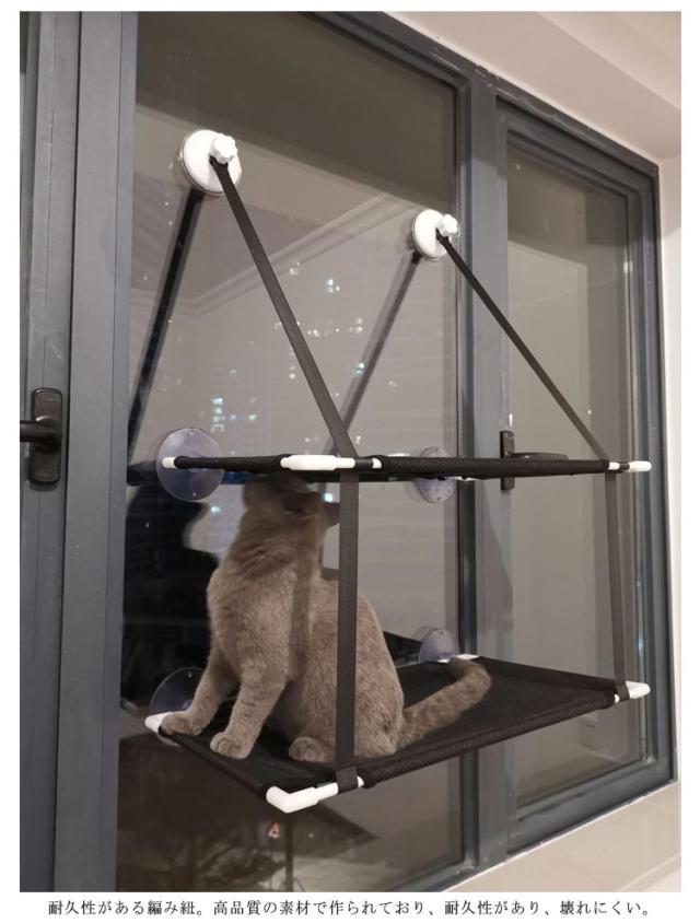 | 猫 窓用ハンモック。二層 取り付け簡単/耐荷重25kg 窓台ハンモックを利用すると、普段外に出ない猫ちゃんは自然的な美しい景色を眺めながら、暖かい日光に浴びてゆ っくりくつろぎできます。 耐久性がある編み紐。高品質の素材で作られており、耐久性があり、壊れにくい。 優質PVCチューブ。優質PVC管を採用、使用中、外れ落ちる心配が全然ありません。 耐荷重25kg!落ちる心配がありません。想像以上に安心感がある。 メッシュ素材で作られた猫用ハンモックです。通気性がよいことて猫の体温でハンモックが蒸れるのを防いて猫ちゃんが爽やかに過ごせます。 水洗い可能のマット。マットを取り外しされた状態で水洗いが可能です、 一旦汚れたら直接洗濯機に投入して、簡単で洗濯でき、いつても清潔を保つことができます。 セット内容:紐*2、チューブの吸盤*2、紐の吸盤*2、Lチューブ*4、シット、チューブ*4。 取り付け手順:?四つのチューブはシートに挿入。 ?吸盤と細はチューブに付けます。 ?Lチューブは長いチューブに接続します。 ?紐の吸盤は紐に付けます。 吸盤を拭いて、窓に取り付けて完了します。 | |