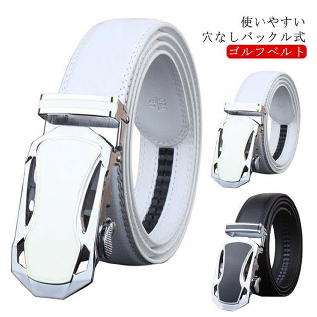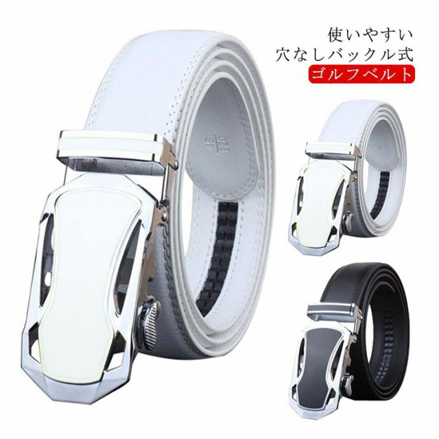 ゴルフ ベルト メンズ 穴なし ゴルフベルト メンズ ホワイト 白 ブラック スクエアバックルベルト 無段階 ゴルフベルト 110 115 120 125cm