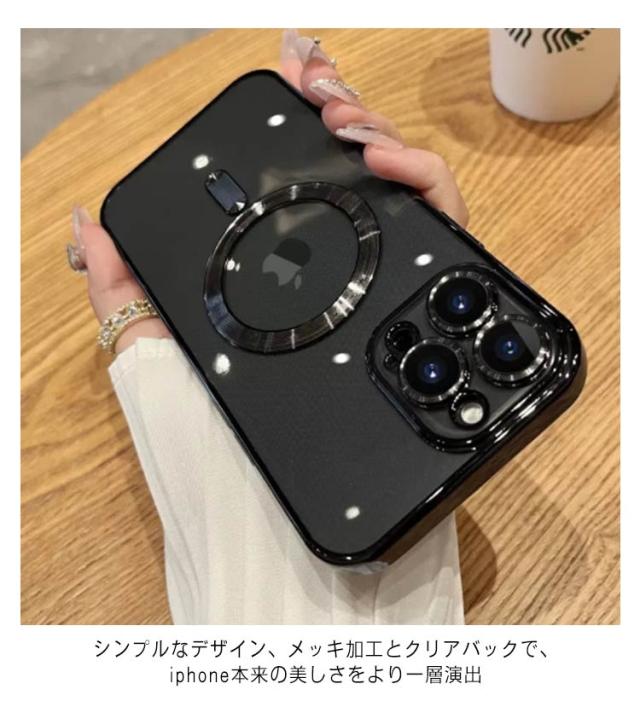 | 【レンズフィルム付き!1つで全面保護!】 【MagSafe充電対応】 iPhone本体とカメラ部分をしっかり守ってくれるスマホケース。 シンプルなデザイン、メッキ加工とクリアバックで、iphone本来の美しさをより一層演出 装着感ゼロの薄さ、本体にぴったりフィットし、スリムで握りやすい カメラレンズまでフルカバー、カメラレンズを傷からしっかりと全面保護。 前面フレーム部分は画面よりもやや高め設計され画面を下にして置いてもスクリーンが擦れず安心。 | |