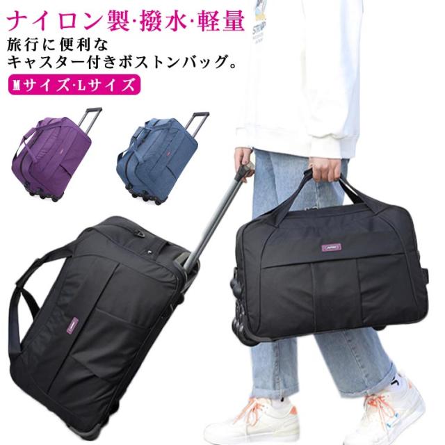 ボストンバッグ キャスター付き 2泊 3泊 大容量 軽量 撥水 キャリーバッグ ソフト キャリーケース Mサイズ Lサイズ ボストンキャリー 機内持ち込み レディース メンズ 旅行バッグ ナイロン 軽い 修学旅行 旅行 出張 スポーツ ゴルフ 黒