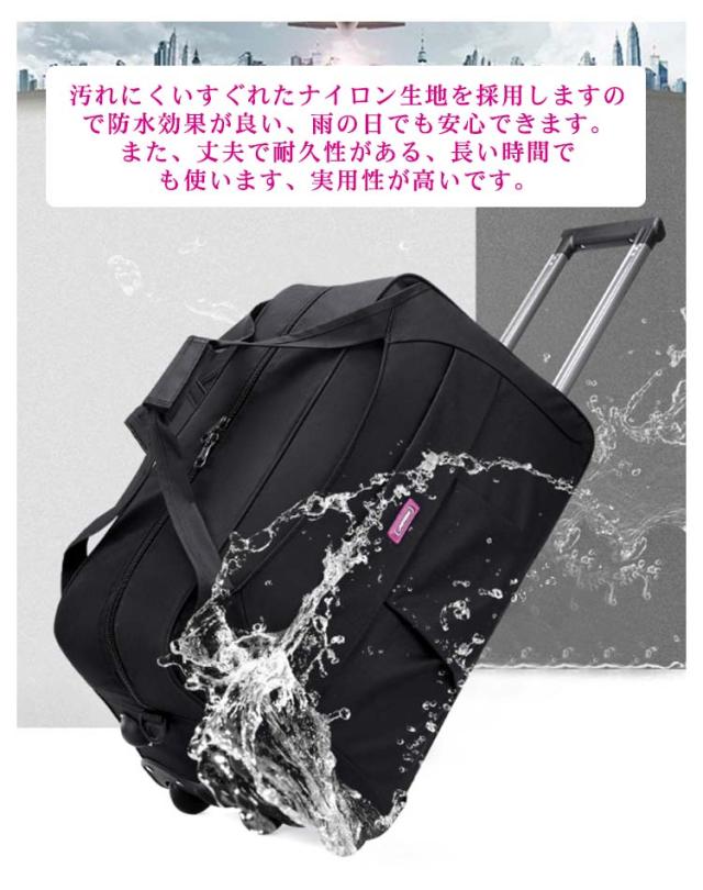 | 旅行に便利なキャスター付きボストンバッグ。【ナイロン製?撥水?軽量】【Mサイズ?Lサイズ】 重たい物をたっぷり入れても、キャスター付きなので持ち運びもラクラク♪ フロントポケットは鍵、携帯電話、ノート、パスポートなどの小物を持ちやすい 開口部が大きく開くダブルファスナー仕様。 中がすべて見渡せて大きい荷物もストレスフリーで出し入れ出来ます。 汚れにくいすぐれたナイロン生地を採用しますので防水効果が良い、雨の日でも安心できます。また、丈夫で耐久性がある、長い時間でも使います、実用性が高いです。 折りたたみなので、使わないとき収納でき、スッペースを節約します。 機内持ち込みも可能サイズなので旅行や出張用にも便利。 シンブルなデザイン、性別や年齢などを問わずに、学生から大人まで男性、女性にも適用しています。旅行、出張、通学、合宿、アウトドア、遠足、ショッピング、お釣り、帰省、お出かけ、スポーツ、防災用など様々なシーンで活躍できます。母の日、父の日、誕生日、卒業日など祝日で、プレゼントとしてもオススメです。 | |