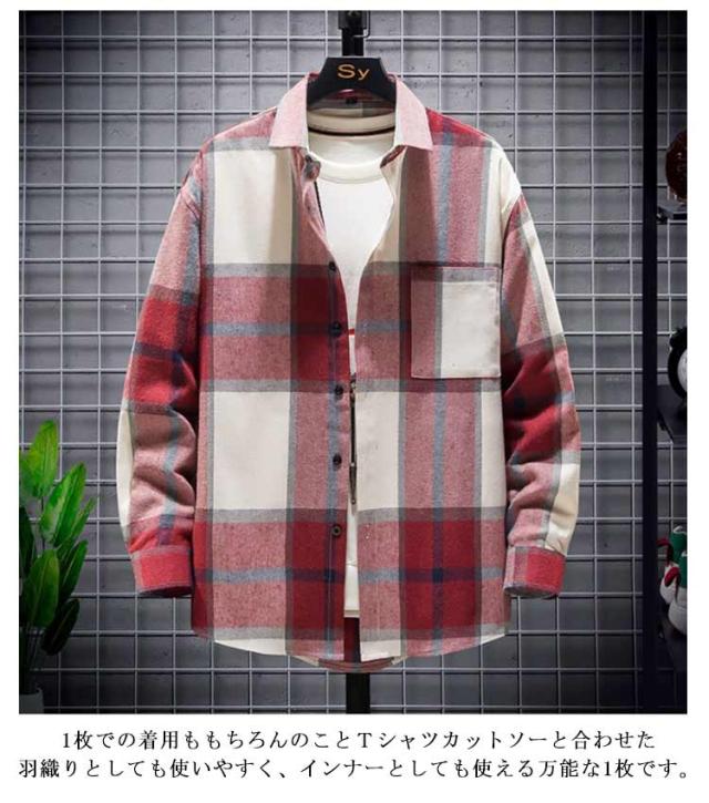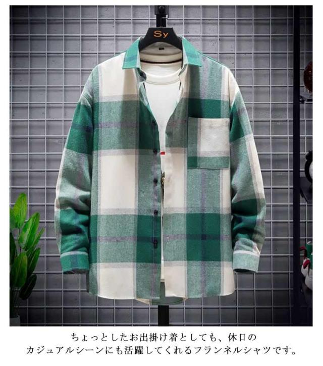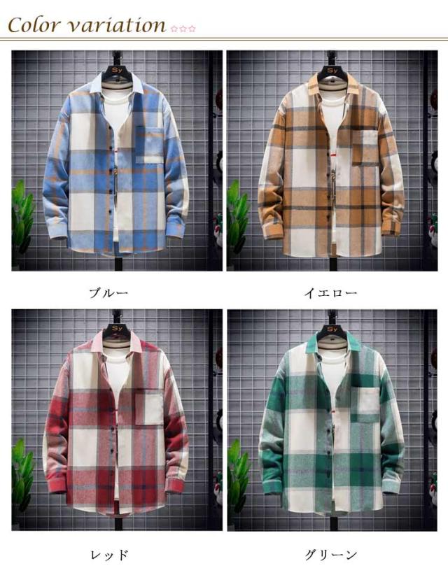 チェックシャツ ネルシャツ メンズ 長袖シャツ 大柄 チェック柄 春 秋 冬 厚手 シャツ 羽織り カジュアルシャツ ゆったり ポケット付き コットン 綿 ネルシャツ 秋服 秋物 トップス 大きいサイズ グリーン ブルー レッド イエロー 【送料無料】