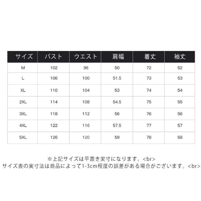 | サイズ | M L XL 2XL 3XL 4XL 5XL |