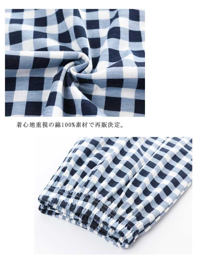 | 気品高いカジュアルチェック柄のルームウェアパンツ。 着心地重視の綿100%素材で再販決定。 綿素材の大人のリラックスウェアは、ゆったりくつろげるので贅沢な時間を演出します。 ストレートなワイドシルエットだから窮屈感もありません。 カラフルなカラーバリエーション展開で新婚夫婦や家族揃いにおススメ。 ウエストはゴム仕様で楽ちんなのでお部屋でのリラックスタイムに最適です♪ オールシーズン大活躍の定番パンツ☆旅行用のパジャマとしても◎ | |