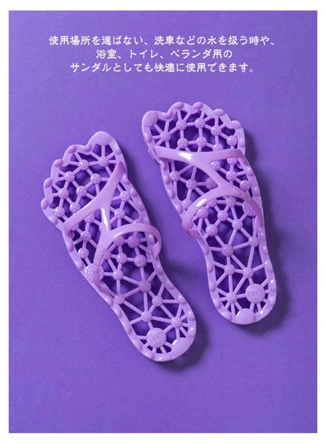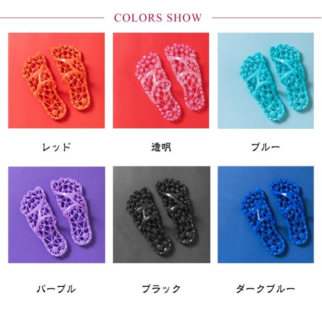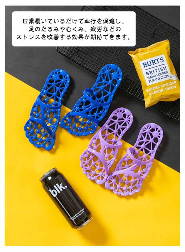| 【足つぼスリッパ】【22.5〜27.0cm】【男女兼用】【6color】 水でぬれても平気、カラフルな色が映えるリフレクソロジーサンダル。 ソールに突起があるため、適度な刺激が足のツボに効きます。 使用場所を選ばない、洗車などの水を扱う時や、浴室、トイレ、ベランダ用のサンダルとしても快適に使用できます。 日常履いているだけで血行を促進し、足のだるみやむくみ、疲労などのストレスを改善する効果が期待できます。 | |