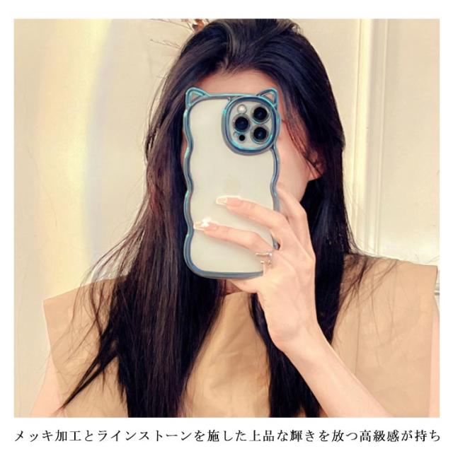 iPhoneケース うねうね なみなみ iphone15 iphone15pro max iphone15 iphone14 iphone13 猫耳 ケース メッキ シリコン 耐衝撃 かわいい スマホケース ウェーブ クリアケース クリア 透明 可愛い おしゃれ SNS 大人かわいい 女子 送料無料