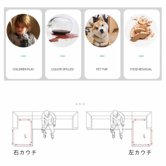 | サイズについての説明 | S(向かって左カウチ) L(向かって左カウチ) S(向かって右カウチ) L(向かって右カウチ) |