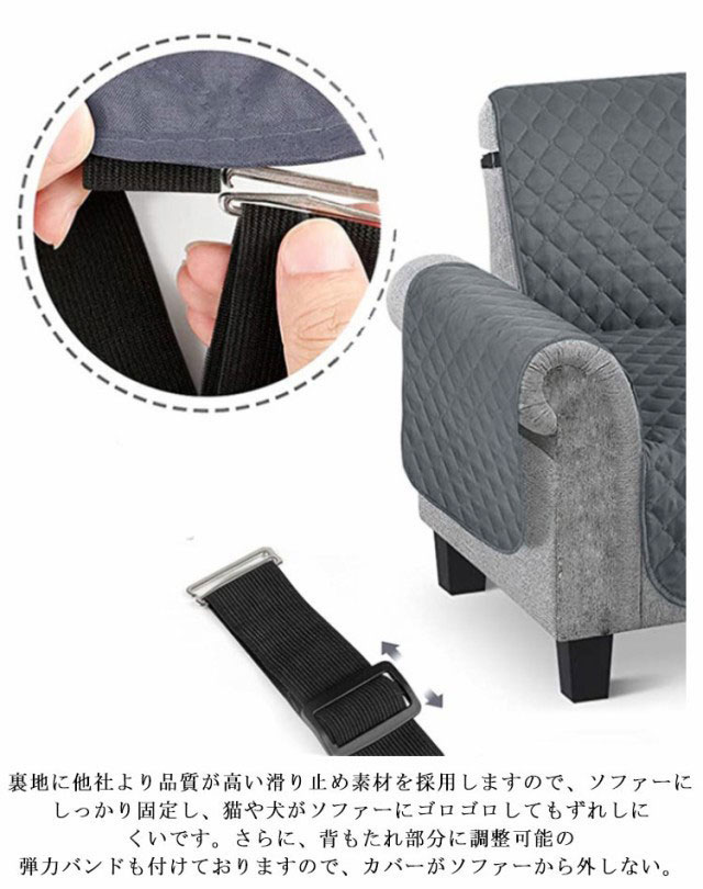 | 【ソファーの保護シーツ・お手入れ簡単】おしゃれなキルティングカバーはソファーを装飾する同時に、カバーの柔らかさがアップ!子供とペットの肌に優しい一方、足跡やキズから高価のソファーが保護できます。さらに犬猫の毛がつきにくいため、掃除が簡単で、洗濯機で丸洗いも可能! 【滑り止め付き】裏地に他社より品質が高い滑り止め素材を採用しますので、ソファーにしっかり固定し、猫や犬がソファーにゴロゴロしてもずれしにくいです。さらに、背もたれ部分に調整可能の弾力バンドも付けておりますので、カバーがソファーから外しない。 【2層の防水素材・防水機能がUP】普通のソファーカバーより、表地に防水加工を施されておるほか、プラスαとして表地の下にTPU防水素材を敷きました。防水効果が一層にアップされ、子供とペットの唾液やシミになりがちな紅茶やコーヒーなどこぼしてもすぐに染み込む恐れがありません。 【天然コットン素材】中間層は天然コットン素材を用い、シーツの厚さを増やすことにより、ふわふわな座り心地を提供する同時に環境に優しいです。 | |