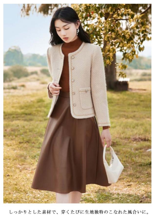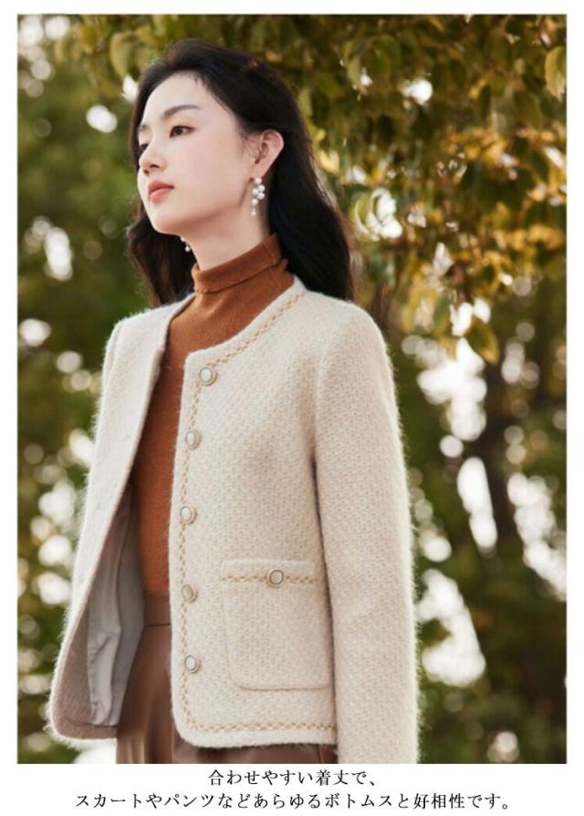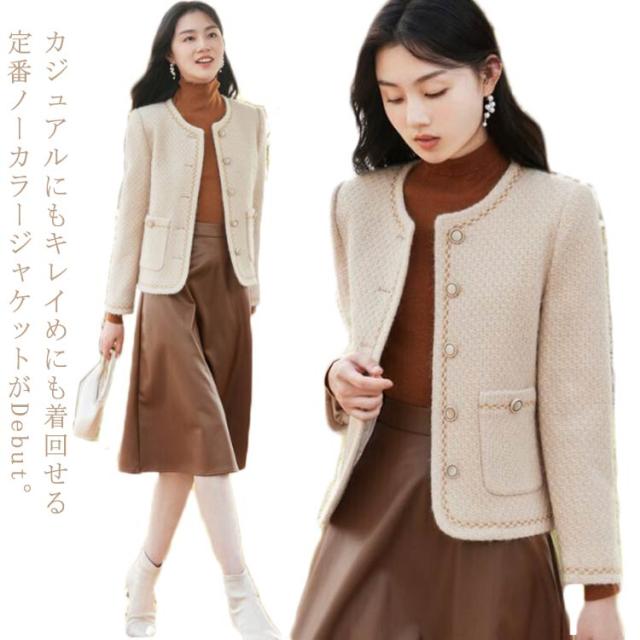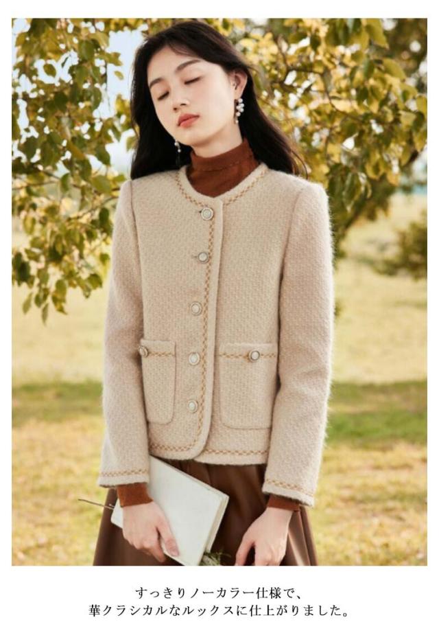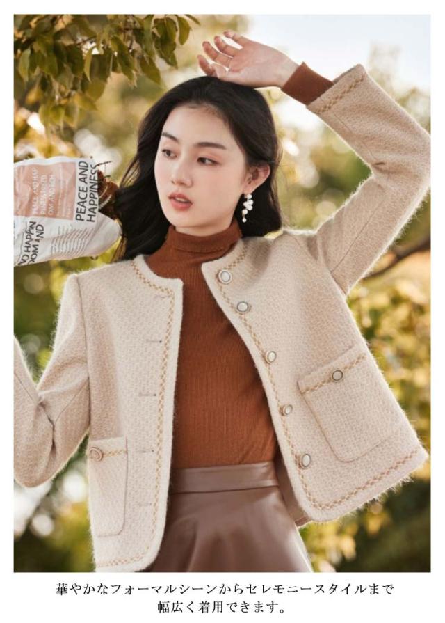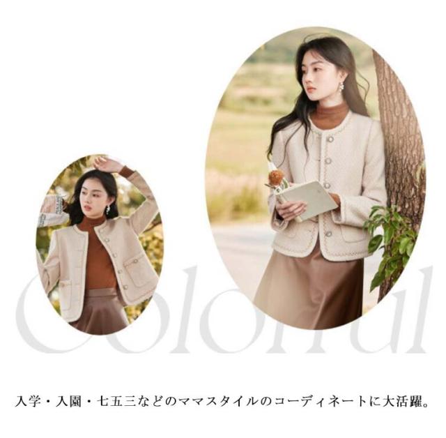 送料無料 ノーカラージャケット ツイードジャケット ショートジャケット ノーカラー ジャケット レディース ショート丈 アウター コート キレイめ 通勤 入学式 卒園式 20代 30代 40代